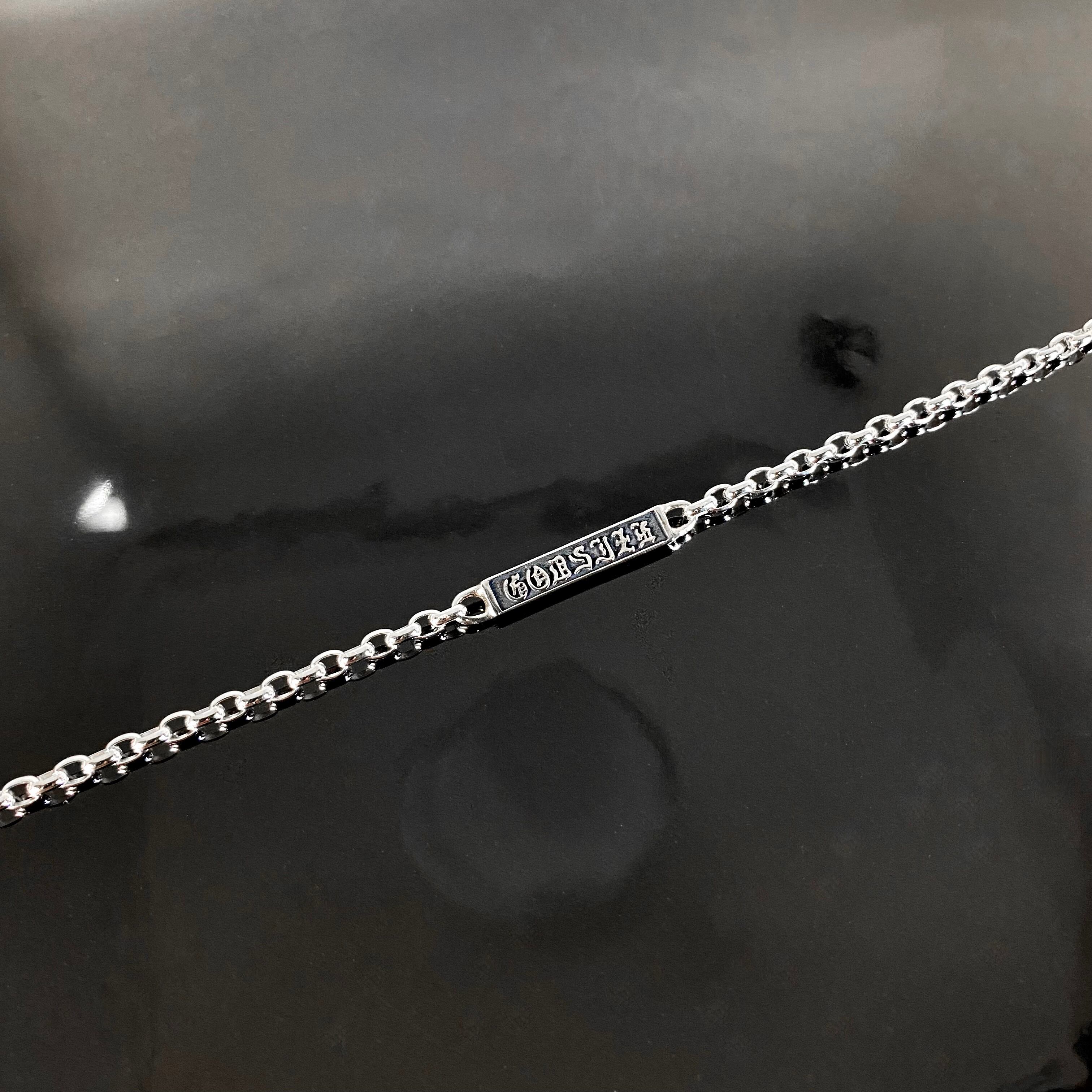 凸に彫刻されたロゴプレートが映えるネックレスチェーンです。