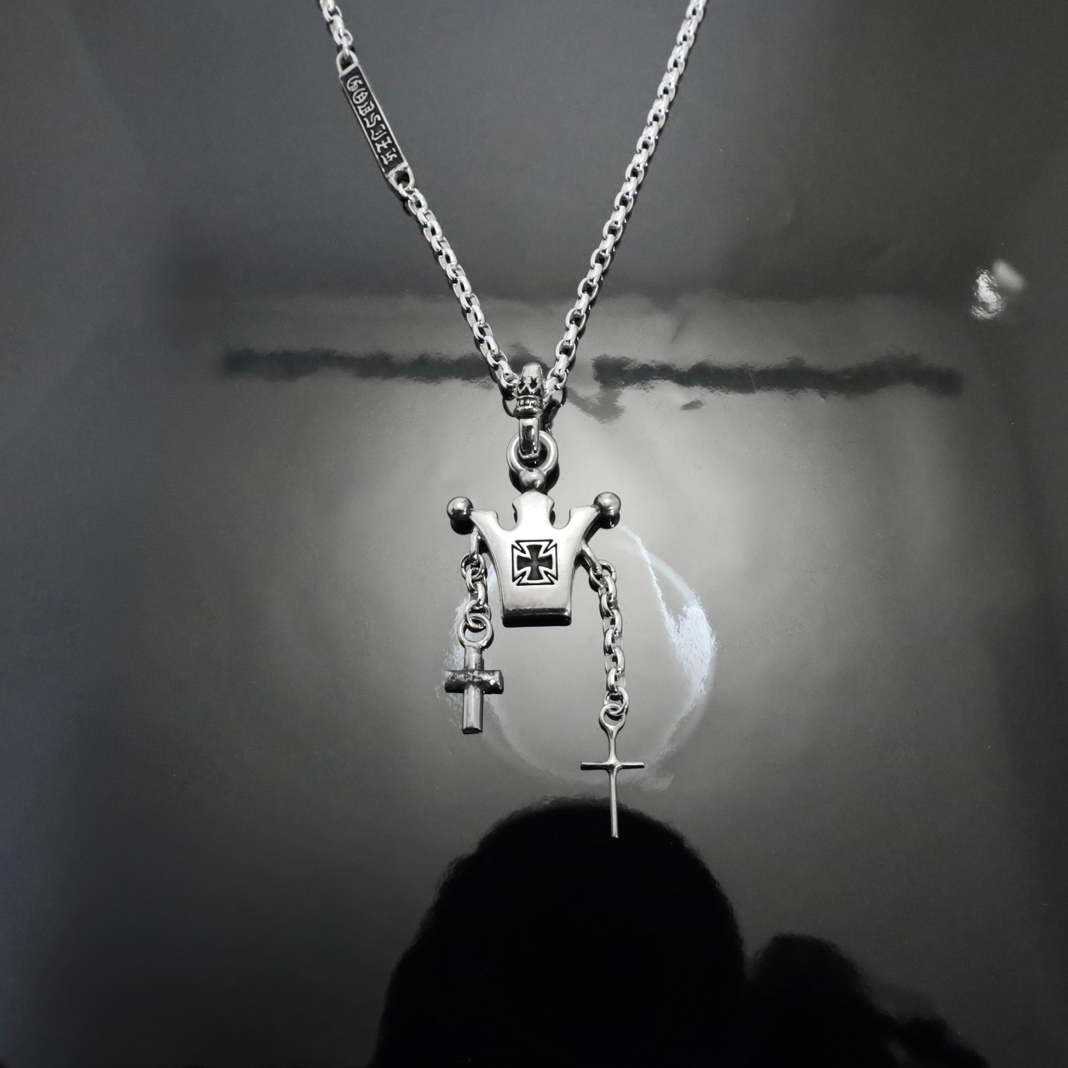 パドロックが胸元で揺れるチェーンの留め具はお好みの位置にセットすることができます。