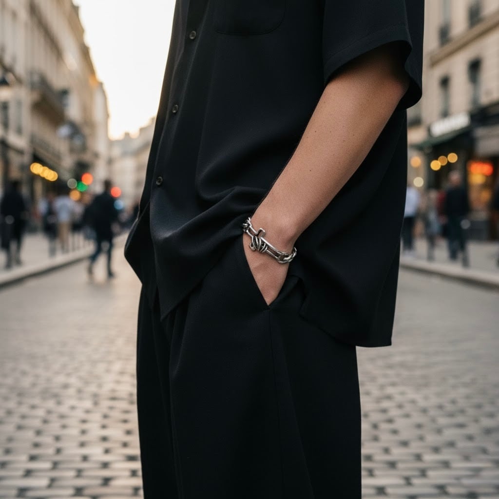 滑らかに連なるボリュームチェーンが、手元に上質な存在感をもたらします。