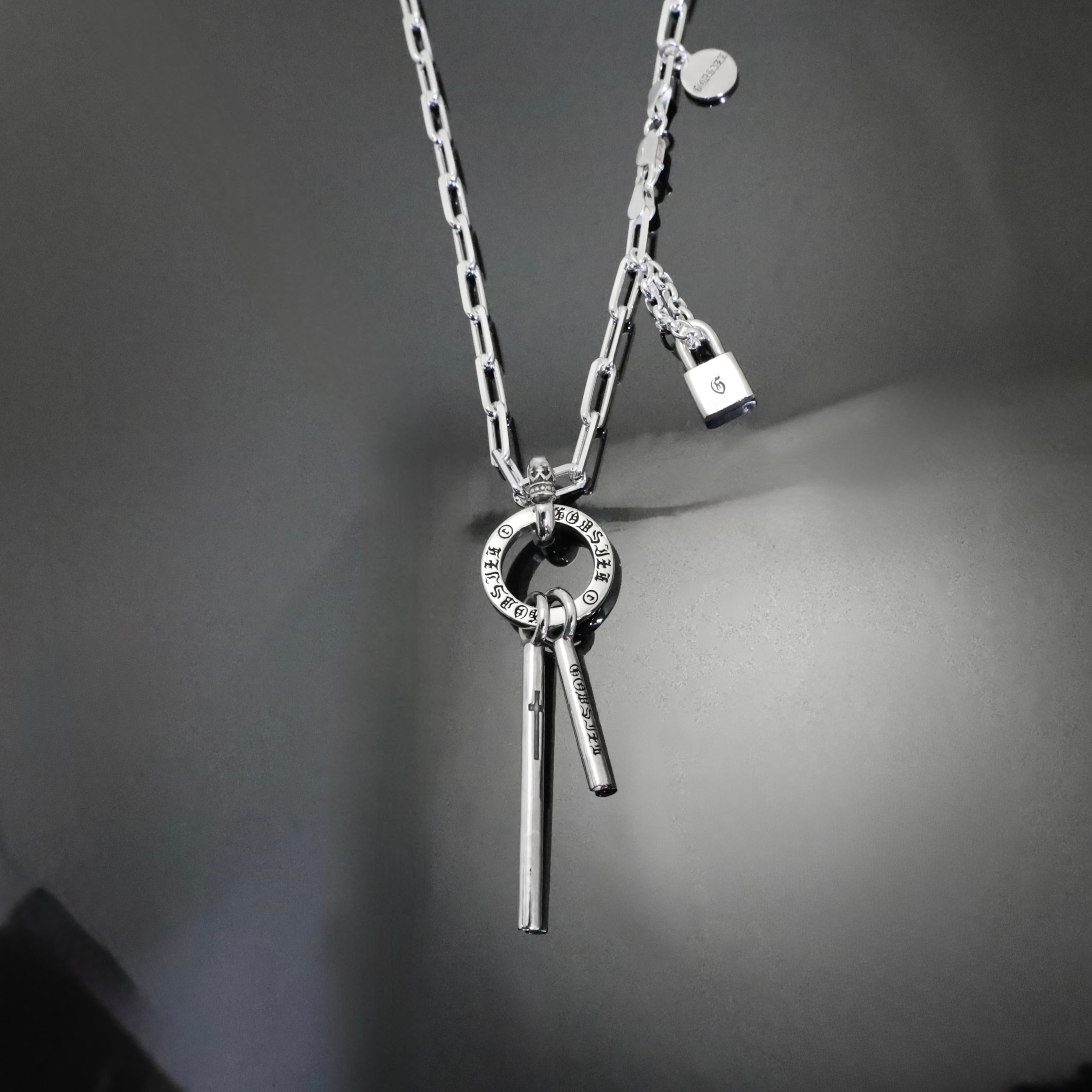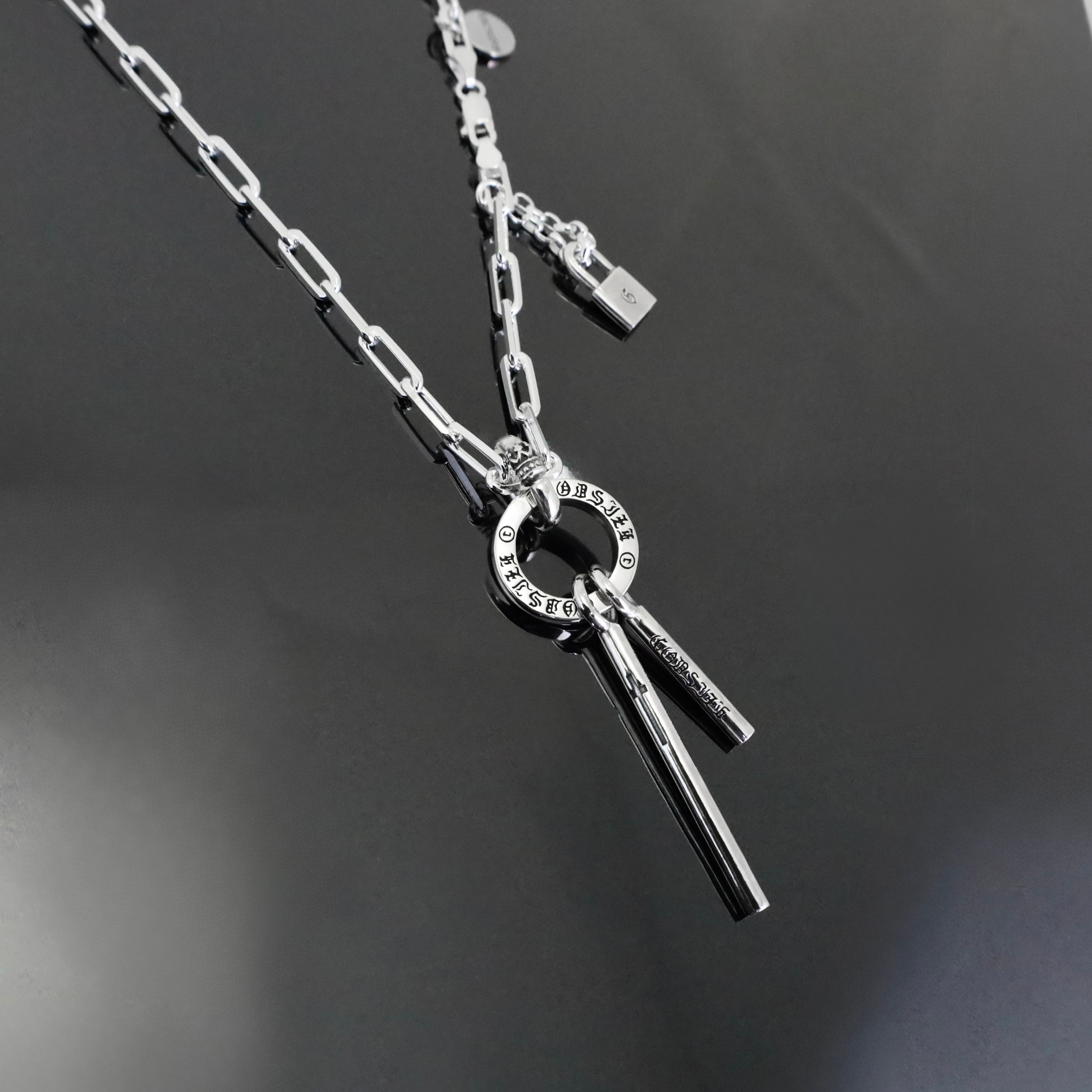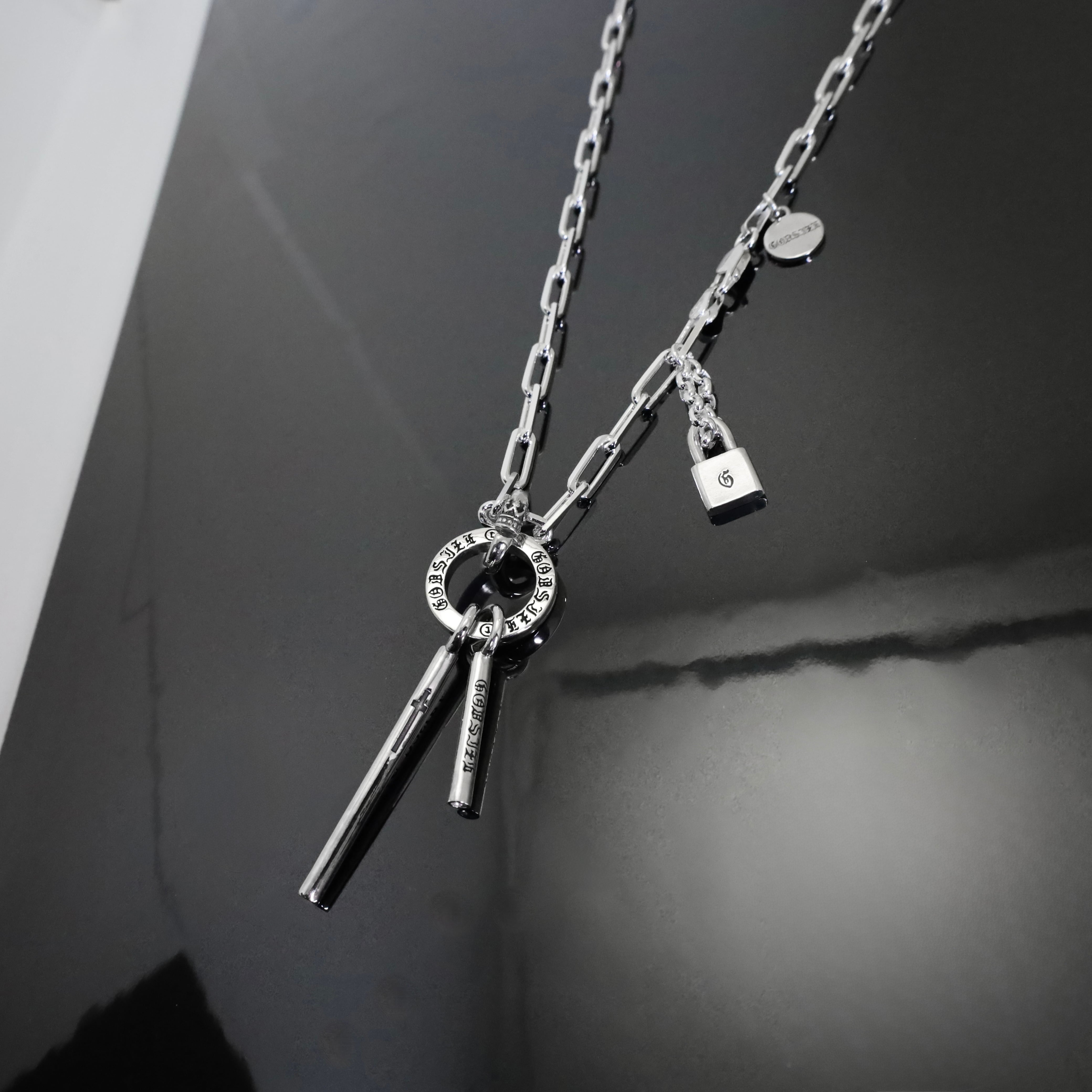無機質な冷たい輝きの中に、静かなエネルギーを宿す「ヴォイドスティックサーキットネックレス」