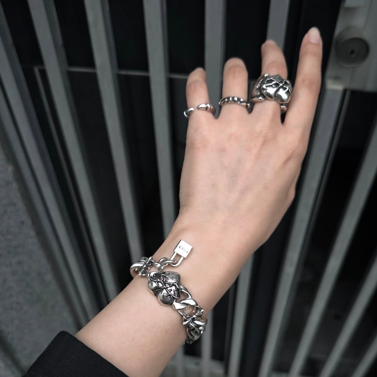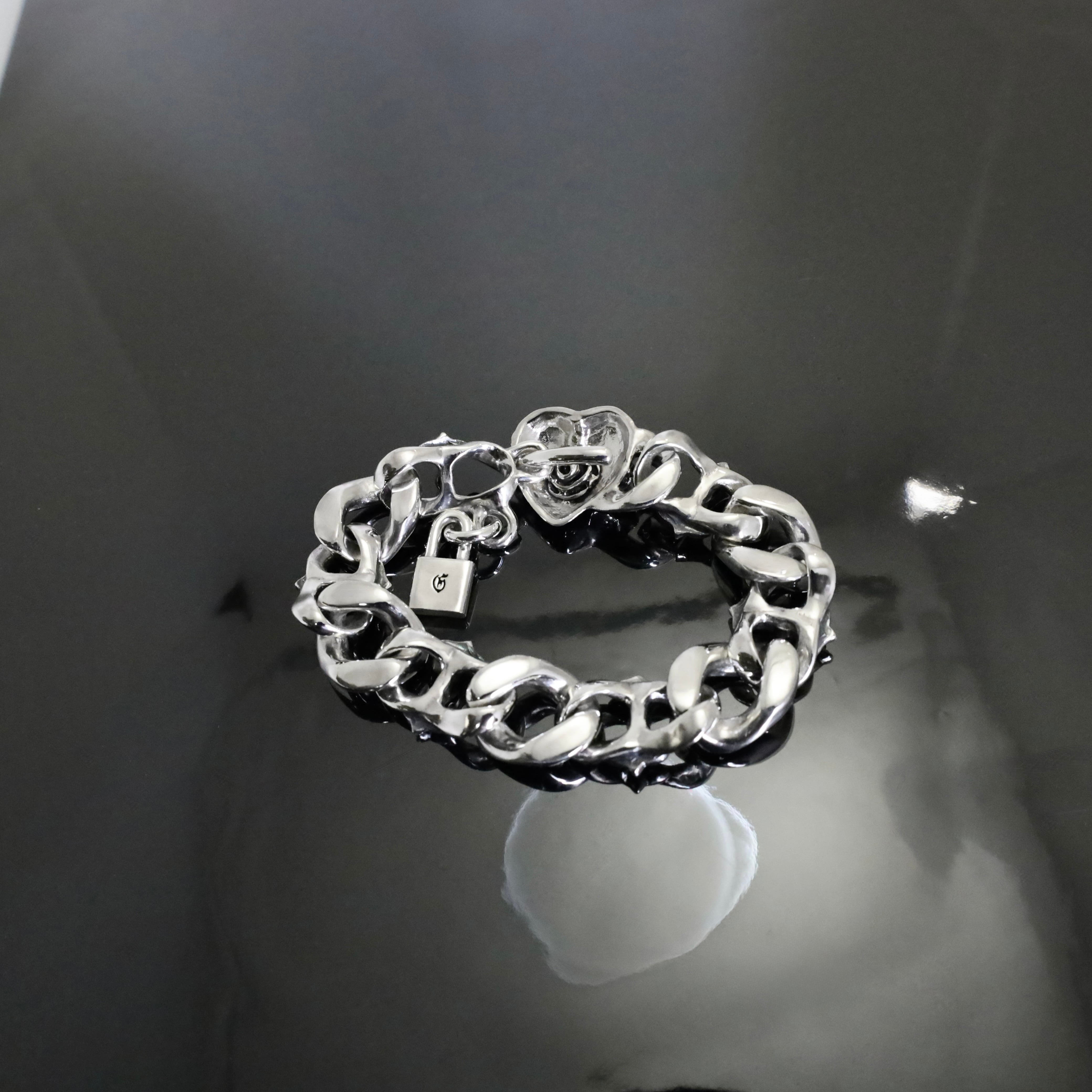 愛の象徴であるハートを、甘くないデザインでダークでエッジーなルックスに仕上げています。