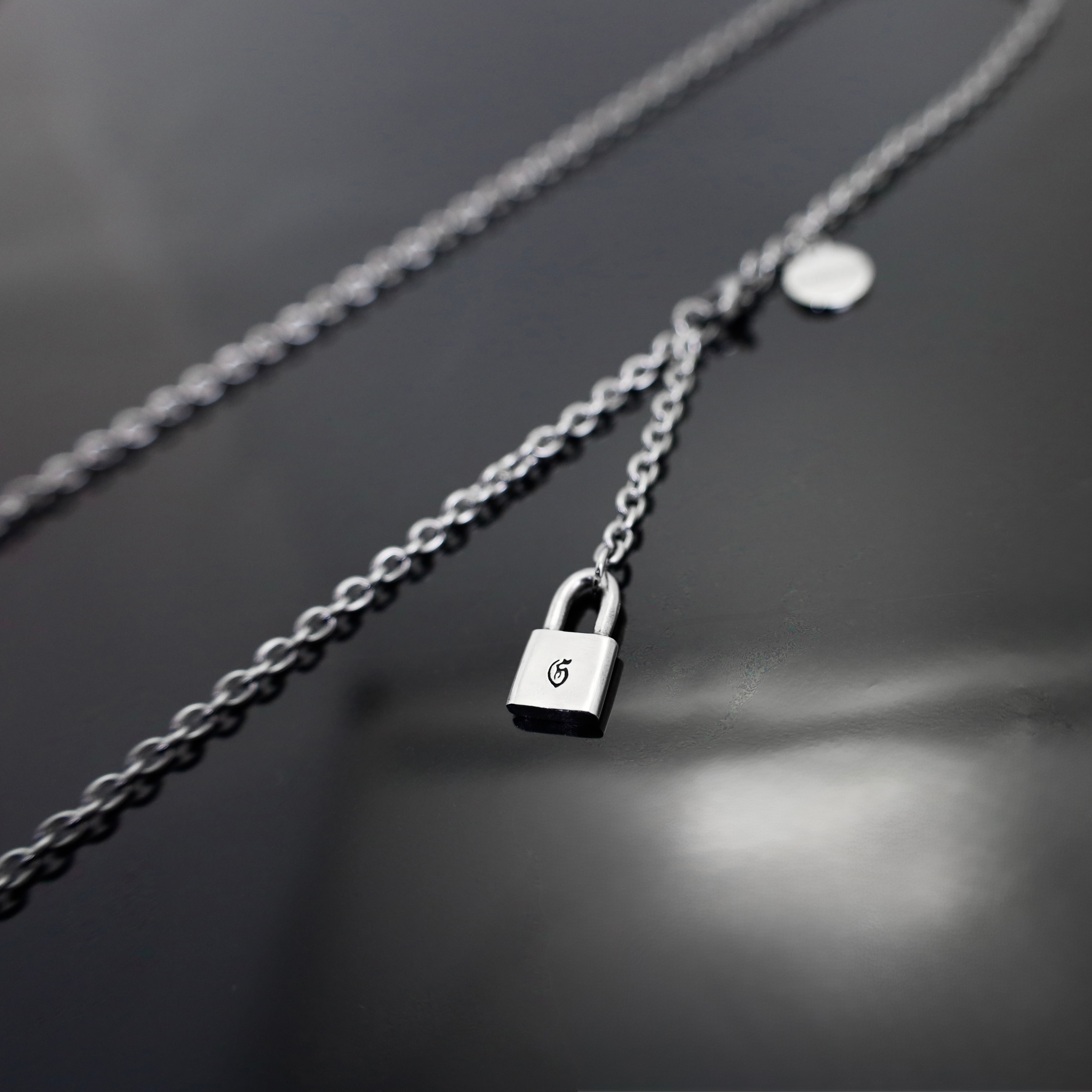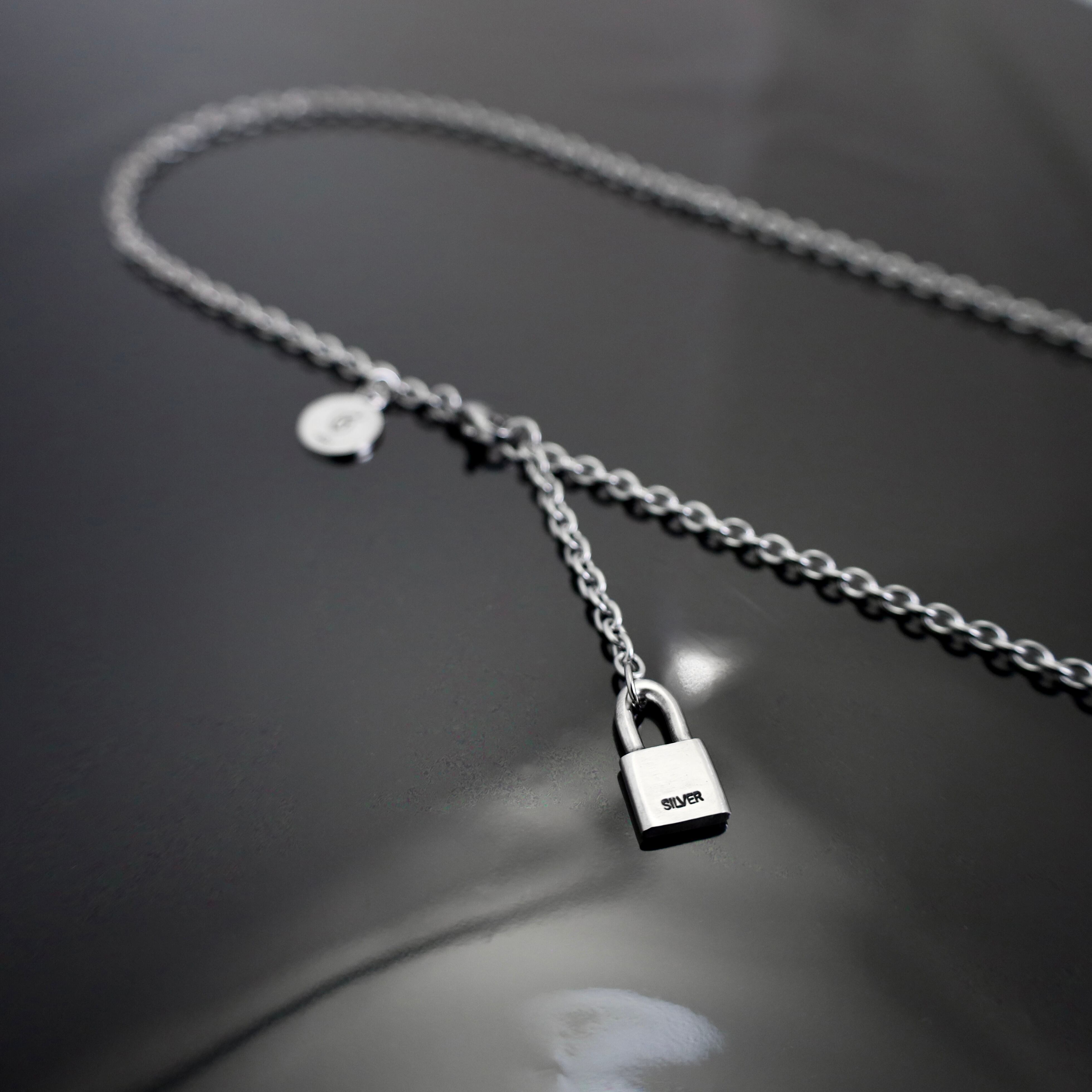 対照的に、パドロックとラウンドタグには、時と共に深みを増すスターリングシルバーを使用。機能美を追求したステンレスの冷徹な輝きと、シルバーが持つ柔らかな温もり。