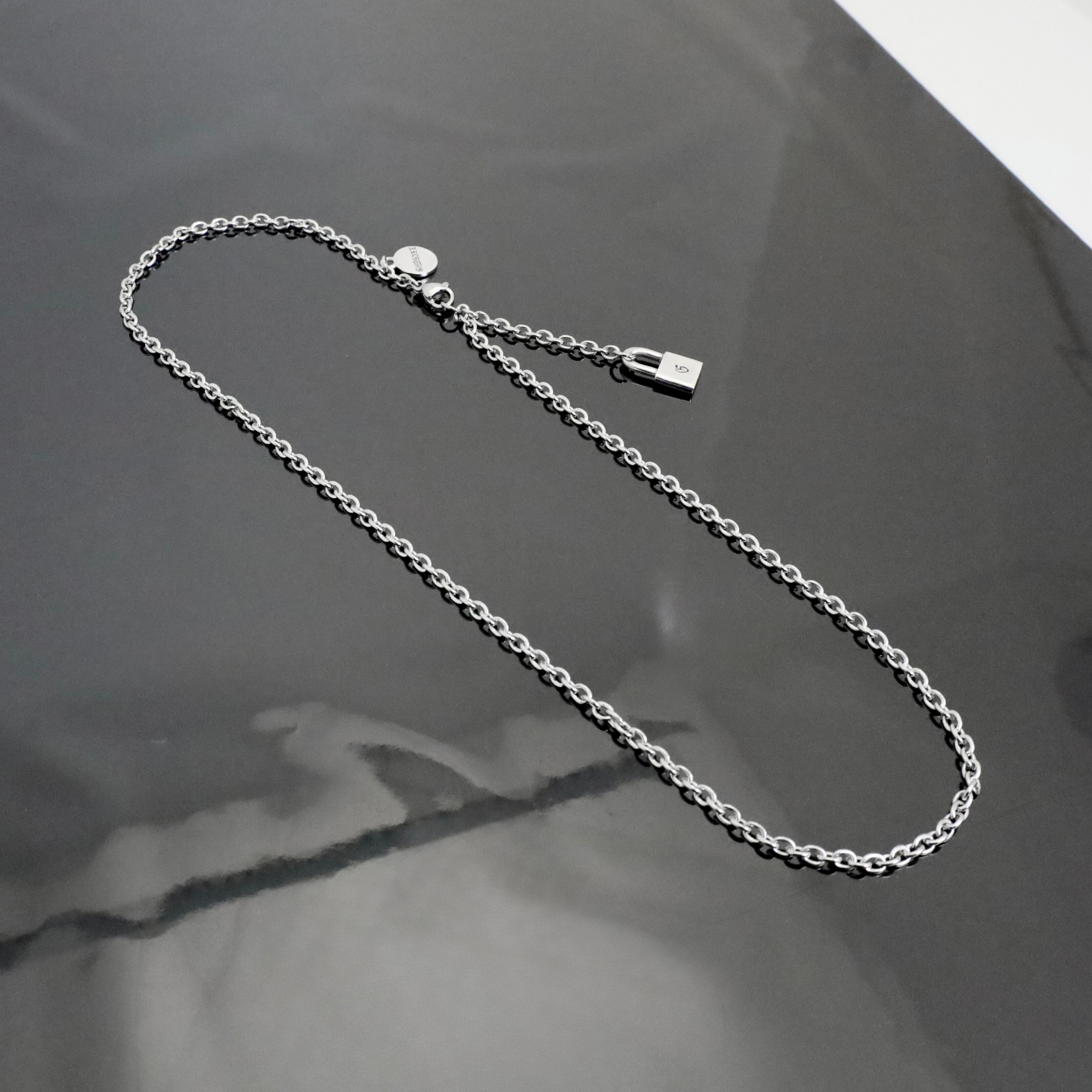ネックレスチェーンには、医療用器具にも用いられるサージカルステンレス(SUS316L)を採用。その名の通り「手術用」としての信頼性を持ち、高い低刺激性と耐食性を誇ります。変色や錆びを寄せ付けにくく、日常のあらゆるシーンにおいて、その輝きは色褪せることがありません。