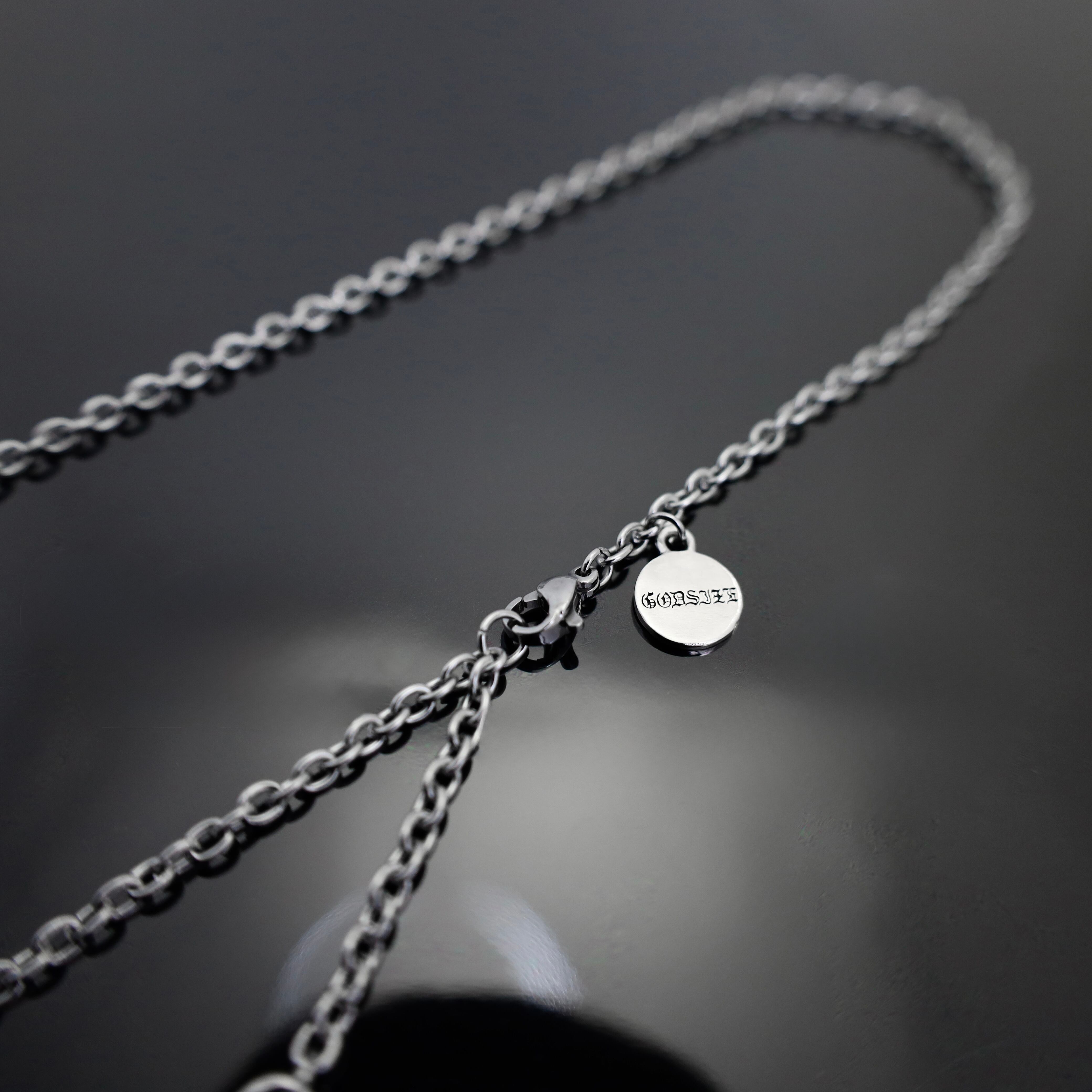 ネックレスチェーンには、医療用器具にも用いられるサージカルステンレス(SUS316L)を採用。その名の通り「手術用」としての信頼性を持ち、高い低刺激性と耐食性を誇ります。変色や錆びを寄せ付けにくく、日常のあらゆるシーンにおいて、その輝きは色褪せることがありません。