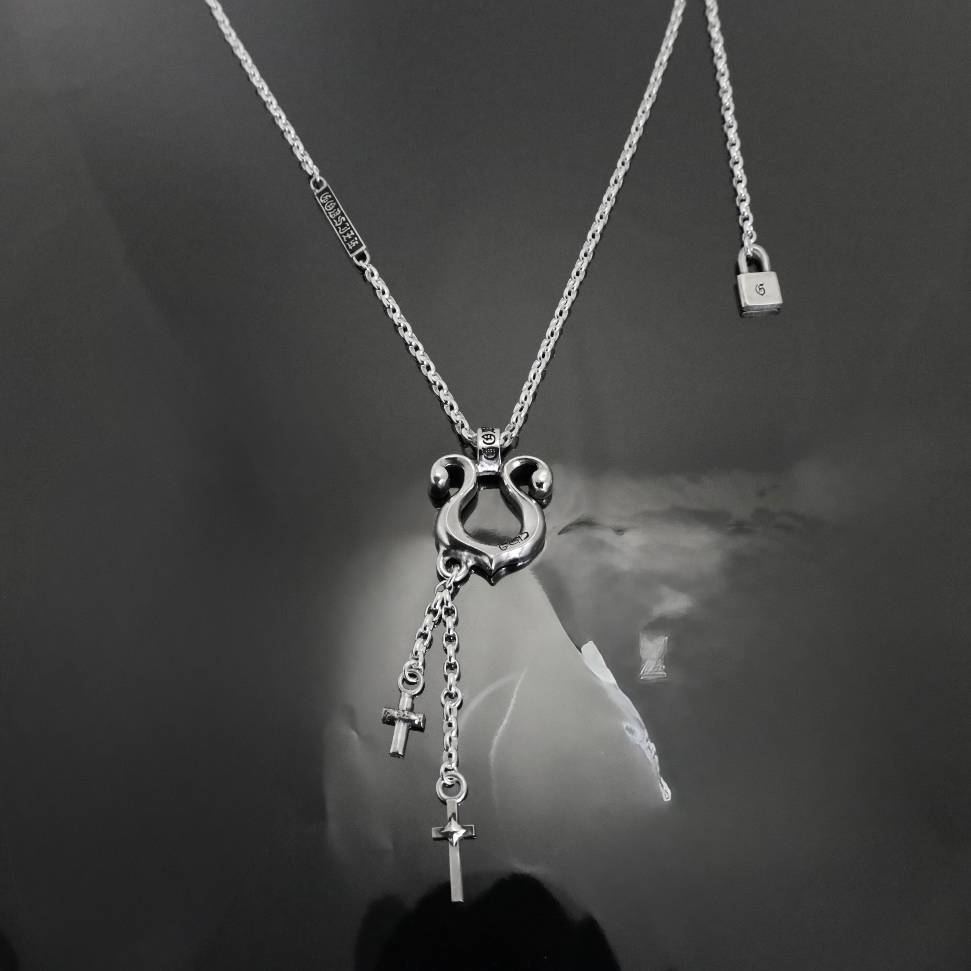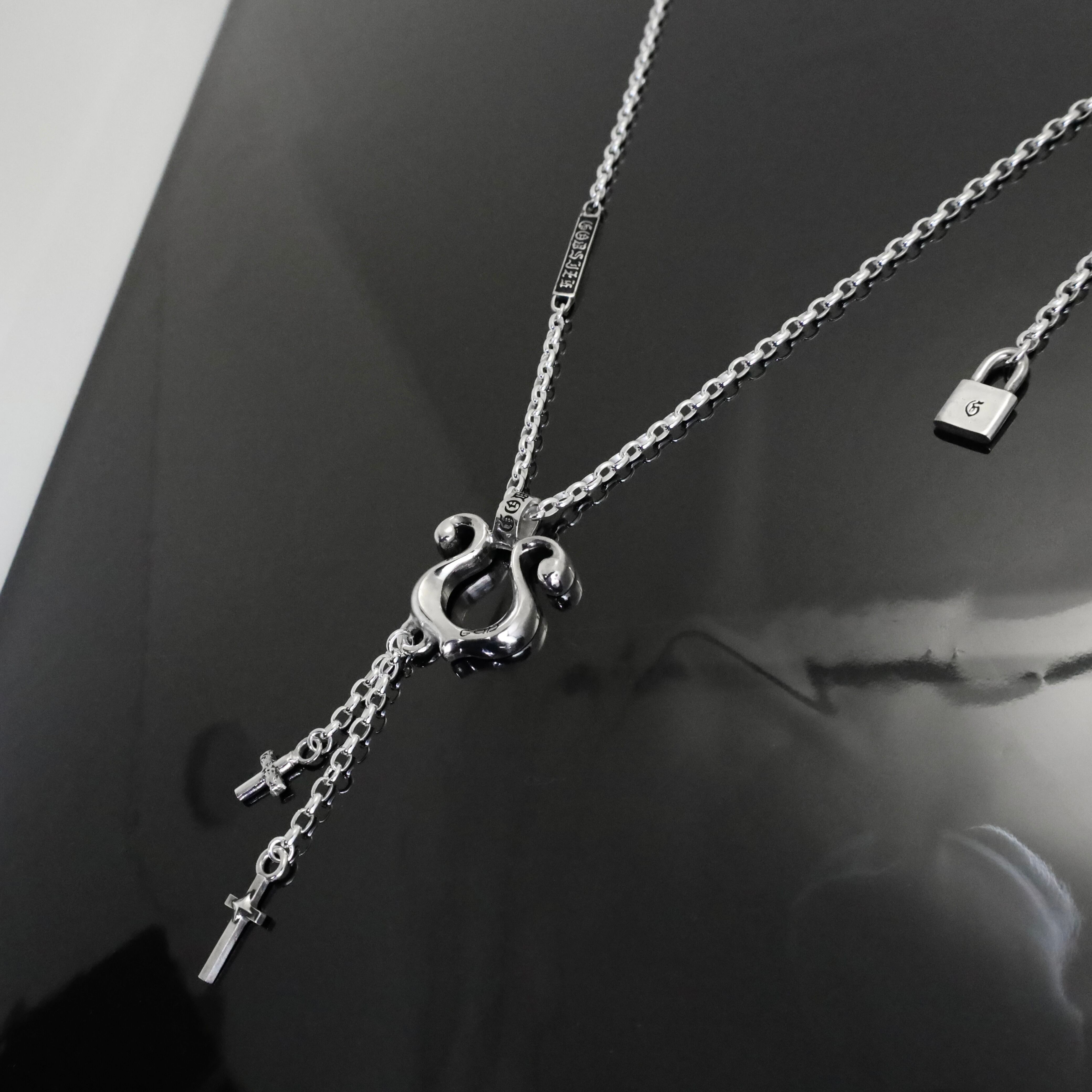 ボトムで揺れる二つのクロスは、静止画のようなジュエリーに「躍動」を与えます。