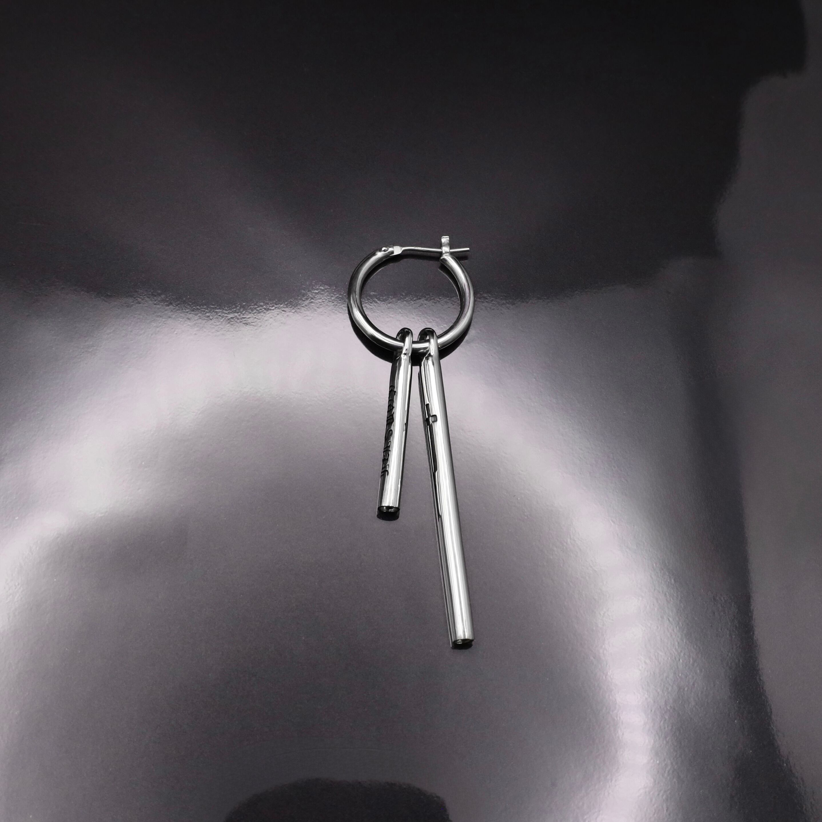 構造そのものをデザインとして昇華させ、フープピアスにあしらいました。