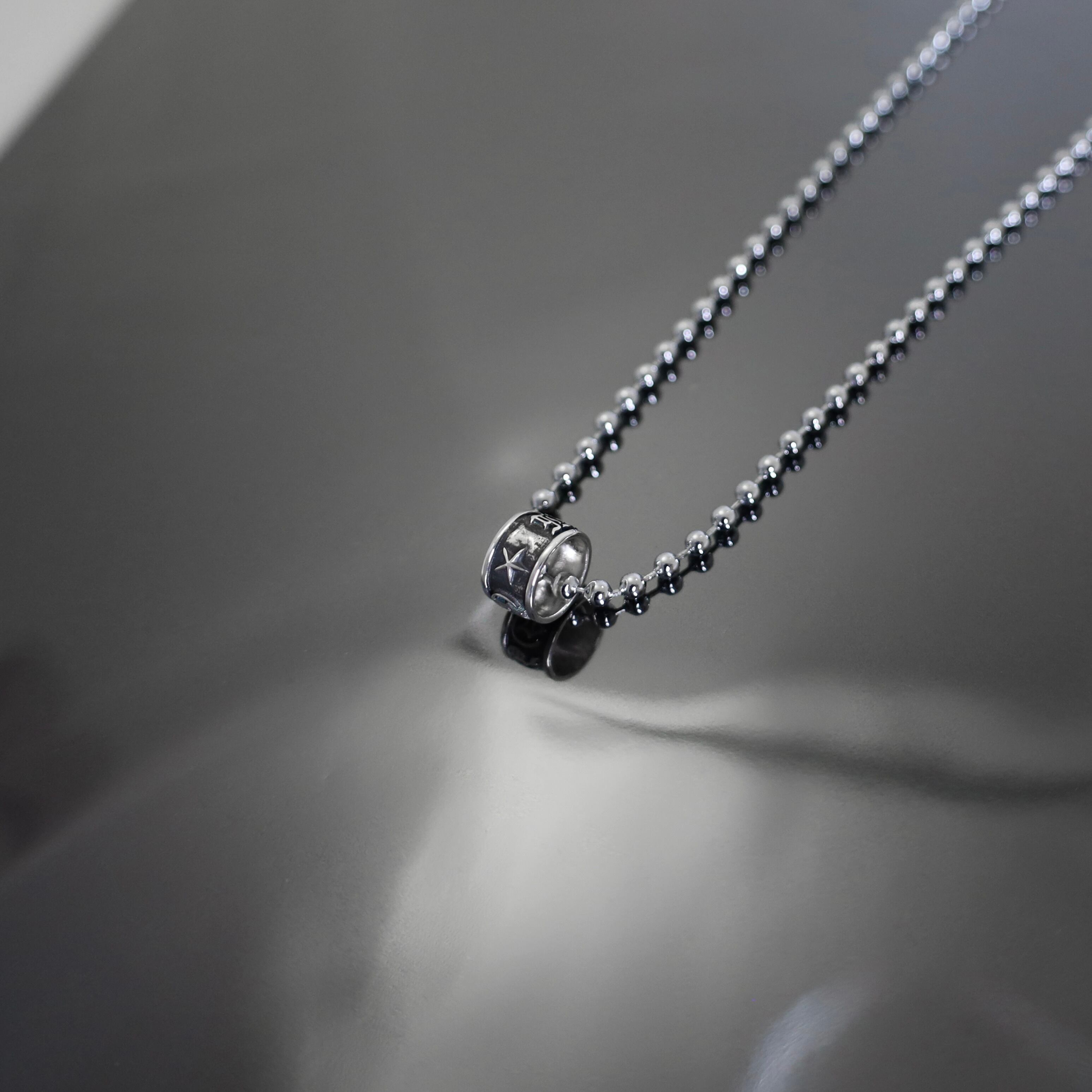 ドラム缶をイメージして製作された円筒形のフォルムに、ブランドのアイデンティティを刻み込んだタイニーレーベルリングペンダント。