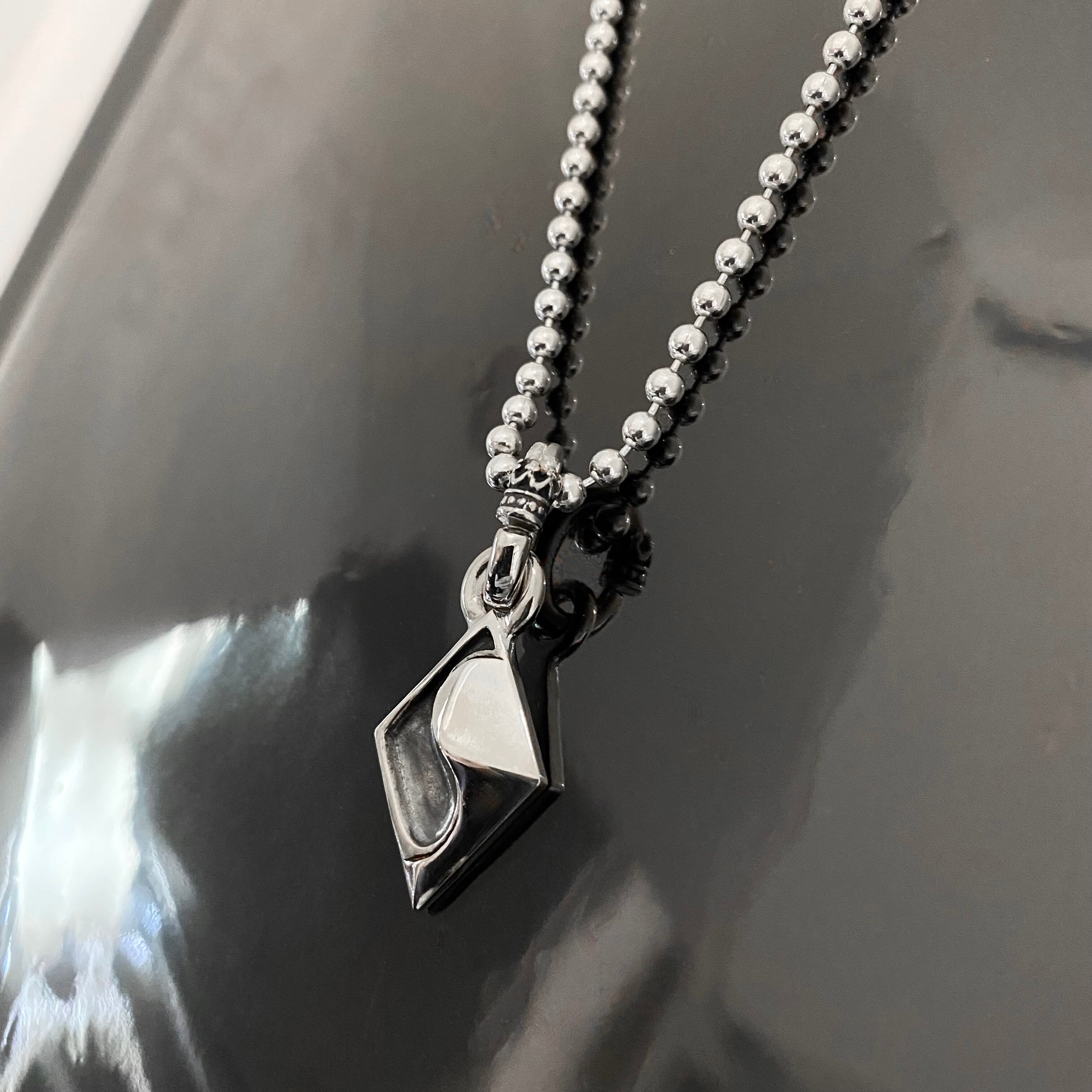 陰と陽が凹凸でデザインされたペンダント。