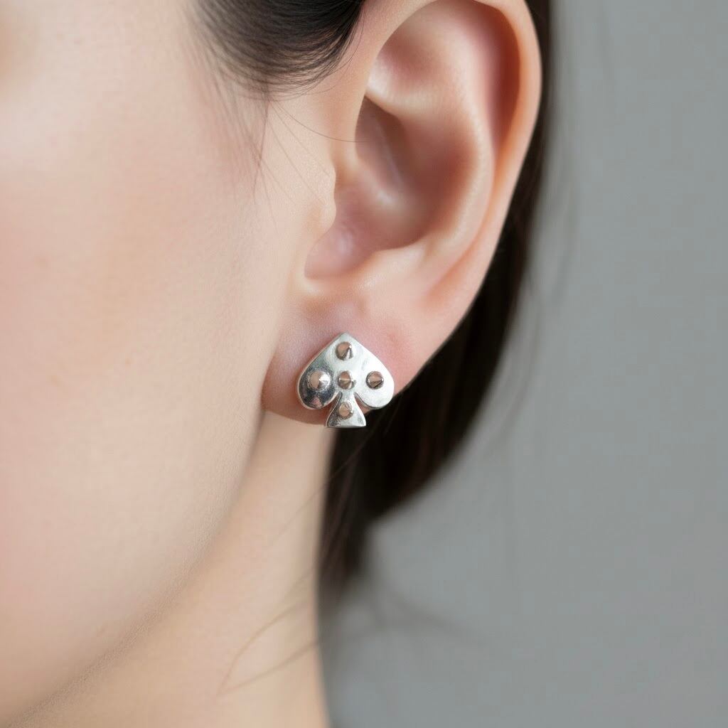 トランプの「スペード」をモチーフに、計算された配置でスパイク(棘)をデコレートした、パンク・ロックな精神を感じさせるスタッドピアス。
