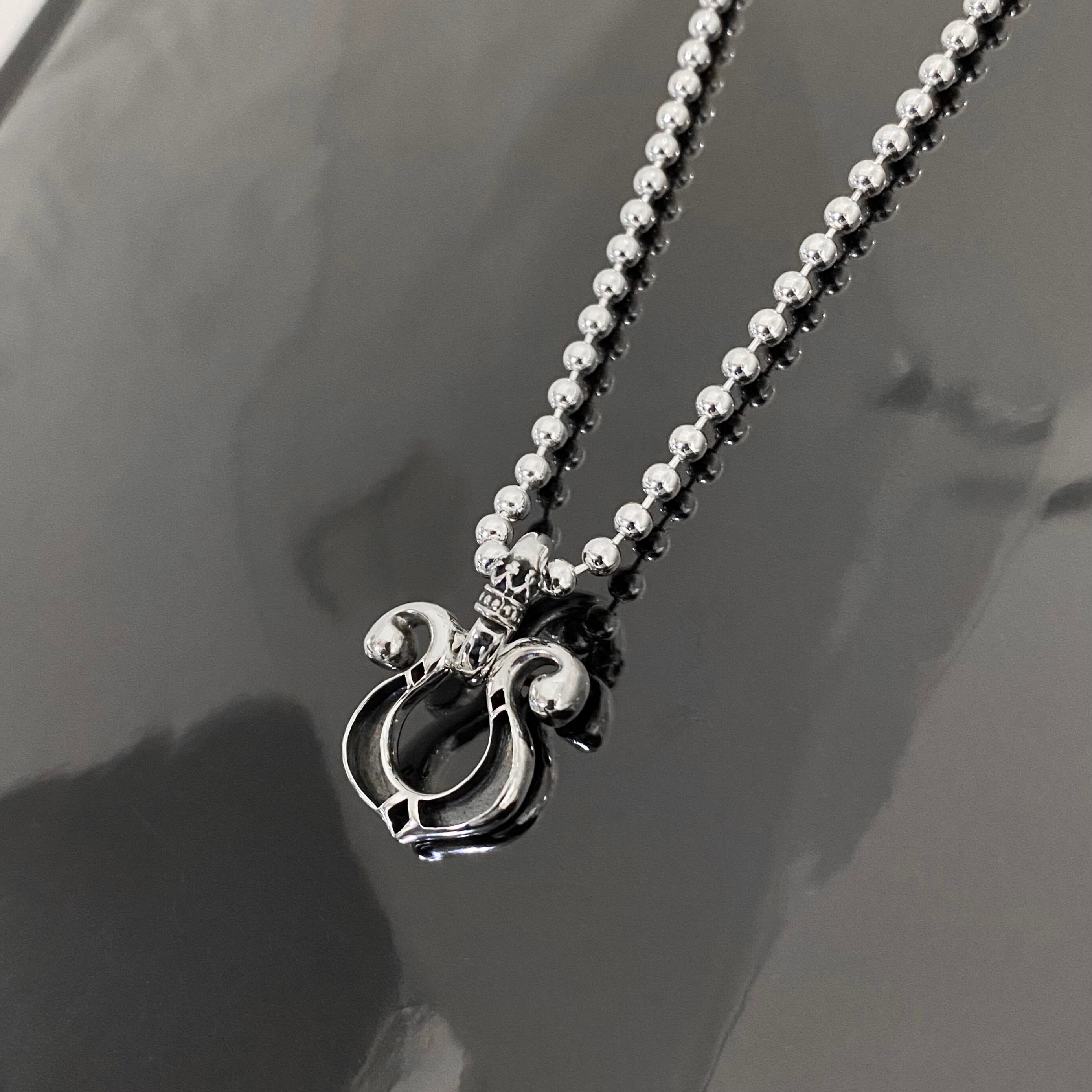 音楽の象徴である音符と幸運を呼び込むと言われている馬蹄を融合したリズミックホースシューのネックレスです。