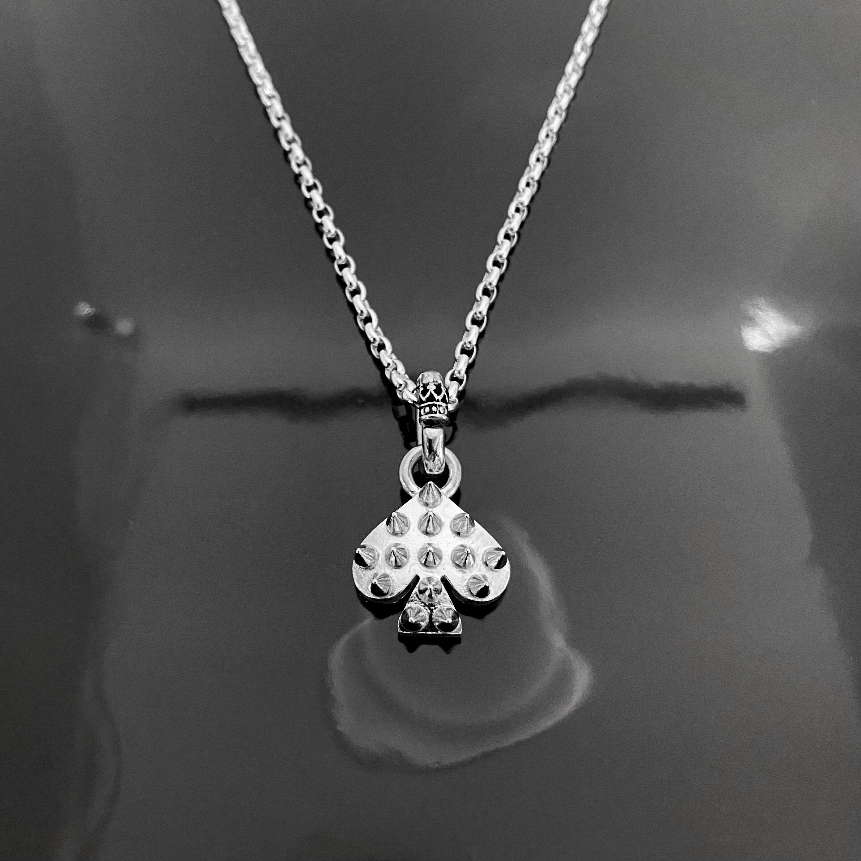 膨らみのあるボディにスパイクスタッズがデコレートされたインパクトのあるチェーンネックレスです。