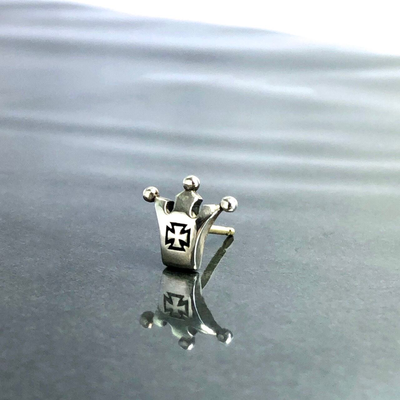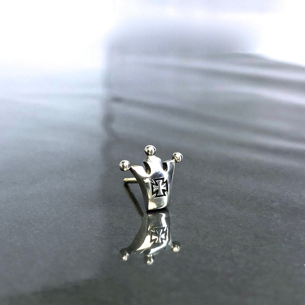 【クラウンスタッド】 王冠をモチーフにしたスターリングシルバーのピアスです。中心には、クロスがあしらわれております。 Made from Music 受注生産(オーダー商品)について お客様のご注文により製造を開始いたします。(コンビニ決済/銀行振込の場合は入金確認後)通常約1週間のお時間を頂いております。 素材:スターリングシルバー・ポストK10 サイズ:縦 9mm 横 10mm 付属品:ポーチ・保証書・ショッパー 保証:ご購入日から2年間 2000年作