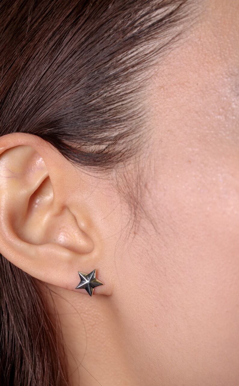 ブランド設立時からの定番アイテム、立体的にデザインされた星のピアスです。