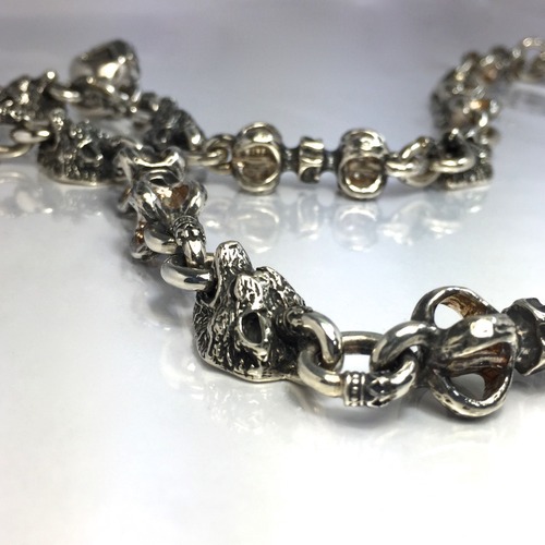 ベルトフックにはライオン、チェーンにウルフ・プルブ・レオナイン・スカルがリンクしたウォレットチェーンです。