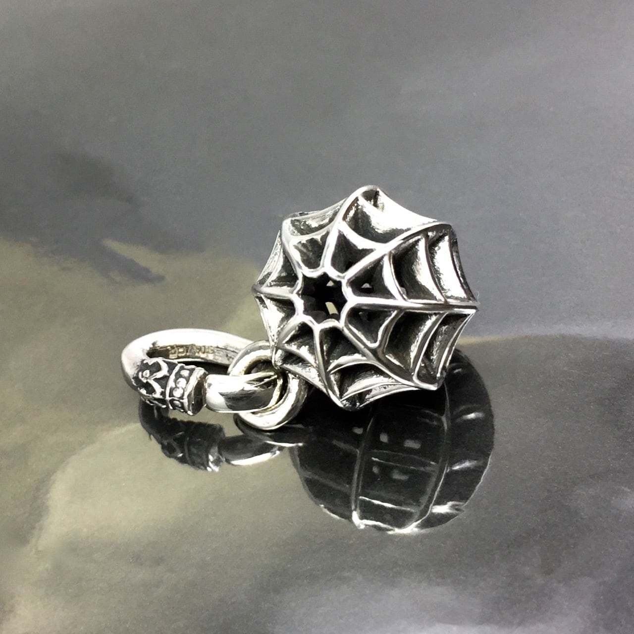 蜘蛛の巣が球体に透かし彫りされたインパクトのあるアイテムです。