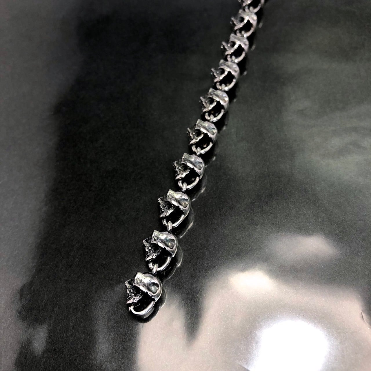 *画像は全長約18.7cmです。17.7cmの場合は、スカルチェーンを15コマで製作しております。
